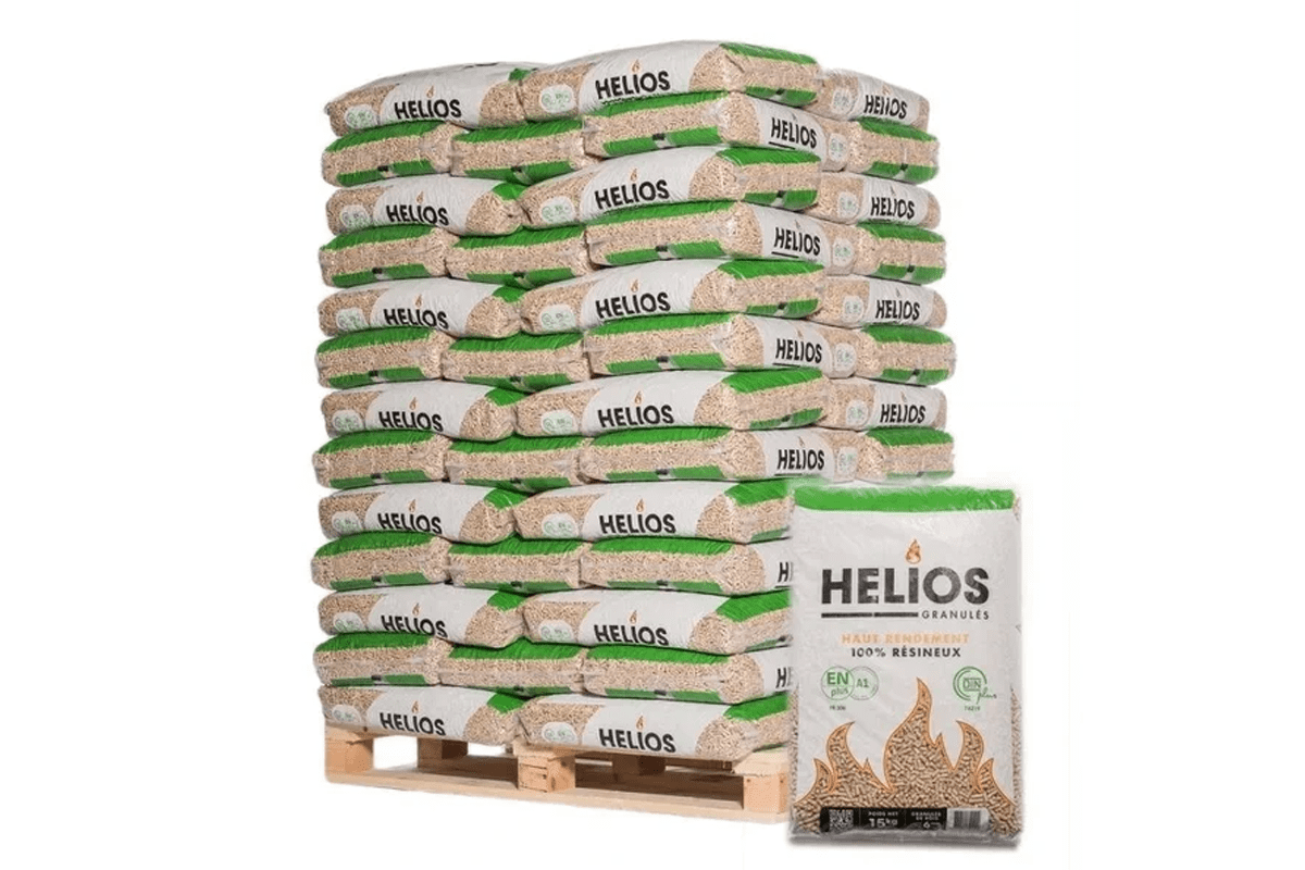 Conditionnée en palette de 65 sacs de 15 kg, la Palette de Pellet HELIOS associe performance, propreté et durabilité. Choisir HELIOS, c’est faire le choix d’un chauffage premium, offrant puissance, confort et fiabilité au quotidien.